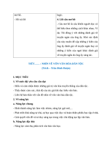 - Có ý thức bảo tồn và phát huy các giá trị của văn hóa dân tộc.