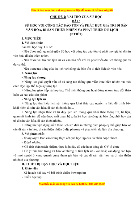 - Nêu được vai trò của Sử học đối với công tác bảo tồn và phát huy giá trị của di