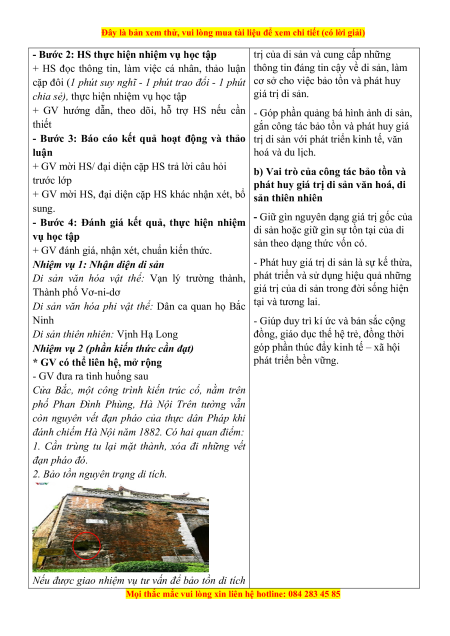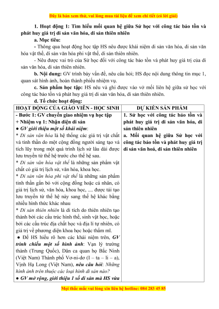- Nêu được mối quan hệ giữa Sử học với công tác bảo tồn và phát huy giá trị di sản