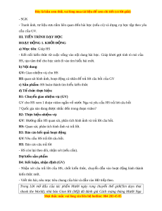 Đây là bản xem th , vu ử i lòng mua tài li u ệ đ xe ể m chi ti t (c ế ó l i ờ gi i ả ) - SGK - Tranh nh, ả tư li u ệ s u ư t m ầ liên quan đ n ế bài h c ọ (n u ế có) và d ng ụ c ụ h c ọ t p ậ theo yêu cầu c a ủ GV. III. TI N Ế TRÌNH D Y Ạ H C Ọ HOẠT Đ NG Ộ 1. KH I Ở Đ NG Ộ a) M c ụ tiêu: Giúp HS - K t ế n i ố ki n ế th c ứ từ cu c ộ s ng ố vào n i ộ dung bài h c ọ . Giúp kh i ơ g i ợ tính tò mò c a ủ HS, tạo tâm th ế cho h c ọ sinh đi vào tìm hi u ể bài m i. ớ b) Nội dung: GV: Giao nhi m ệ vụ cho HS HS quan sát hình nh, ả hoạt đ ng ộ cá nhân đ ể trả l i ờ câu h i ỏ c a ủ GV c) S n ả ph m