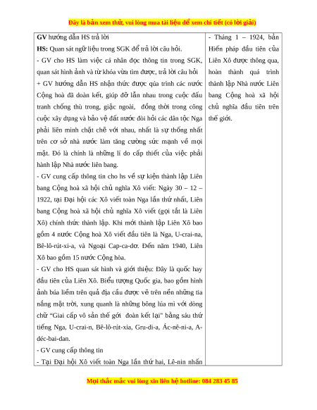 Đây là bản xem th , vu ử i lòng mua tài li u ệ đ xe ể m chi ti t (c ế ó l i ờ gi i ả ) GV hư ng ớ dẫn HS trả l i ờ - Tháng 1 – 1924, b n ả HS: Quan sát ng ữ li u ệ trong SGK đ ể tr ả l i ờ câu h i. ỏ Hi n ế pháp đ u ầ tiên c a ủ - GV cho HS làm vi c ệ cá nhân đ c