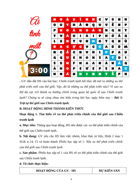 BÀI 3: TRẬT TỰ THẾ GIỚI SAU CHIẾN TRANH LẠNH (2 tiết)