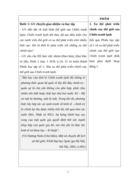 - Nêu được xu thế phát triển chính của thế giới sau Chiến tranh lạnh.