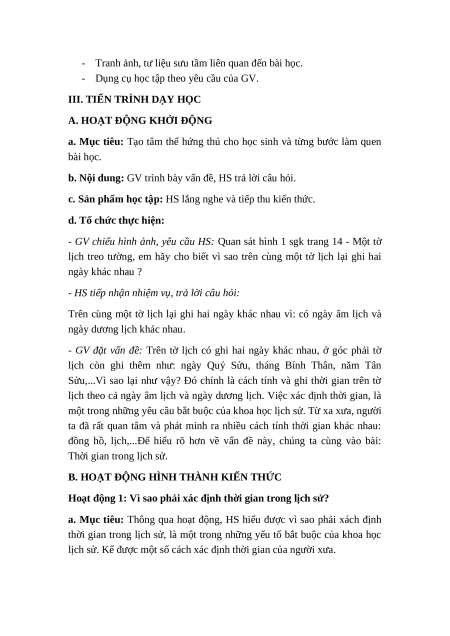 - Biết cách đọc, ghi các mốc thời gian trong lịch sử. 2. Năng lực