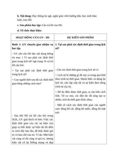 Bước 1: GV chuyển giao nhiệm vụ 1. Tại sao phải xác định thời gian trong lịch học tập sử?