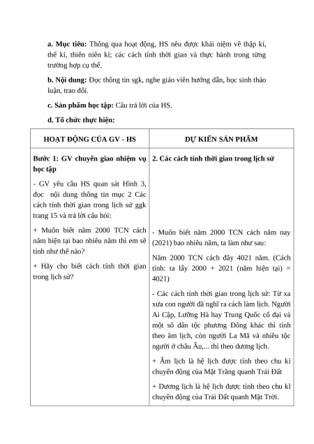 Giáo án Bài 3 Lịch sử 6 Kết nối tri thức (năm 2024): Thời gian trong lịch sử