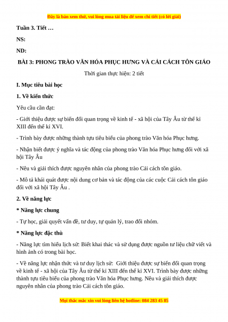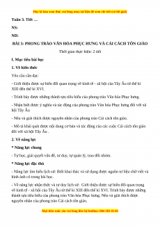 BÀI 3: PHONG TRÀO VĂN HÓA PHỤC HƯNG VÀ CẢI CÁCH TÔN GIÁO