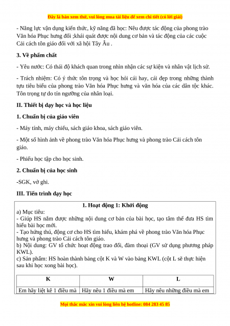 - Tạo hứng thú, động cơ cho HS tìm hiểu, khám phá về phong trào Văn hóa Phục