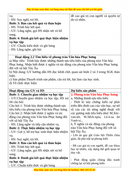 Hoạt động 2.2 Tìm hiểu về phong trào Văn hóa Phục hưng