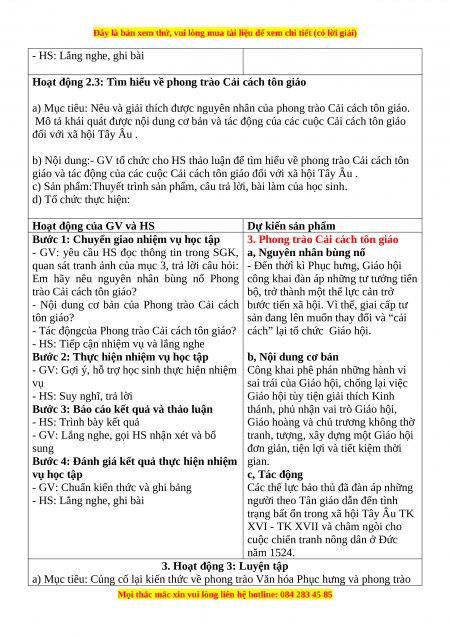 b) Nội dung:- GV tổ chức cho HS thảo luận để tìm hiểu về phong trào Cải cách tôn