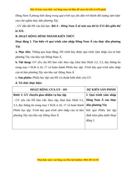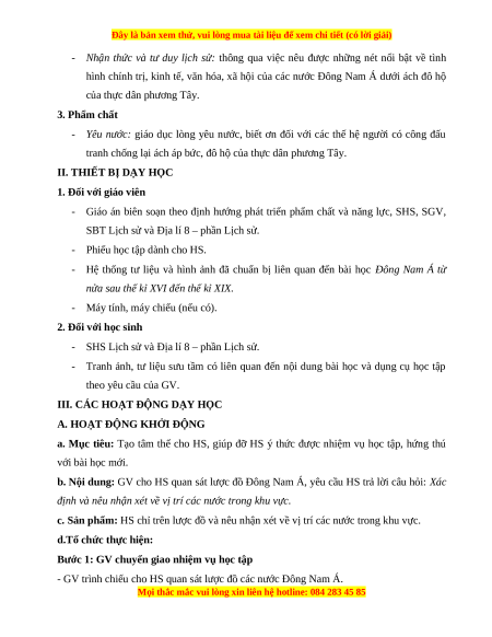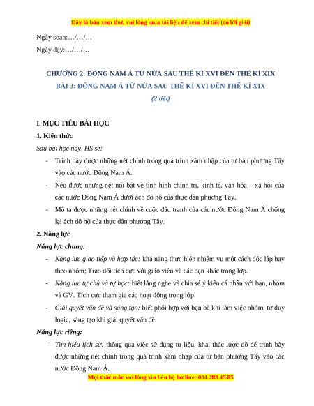 Giáo án Bài 3 Lịch sử 8 Cánh diều (2024): Đông Nam Á từ nửa sau thế kỉ XVI đến thế kỉ XIX