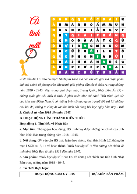 Giáo án Bài 3 Lịch sử 9 Cánh diều: Châu Á từ năm 1918 đến năm 1945