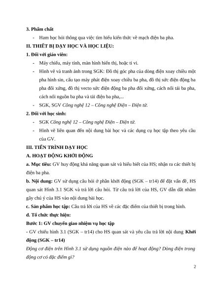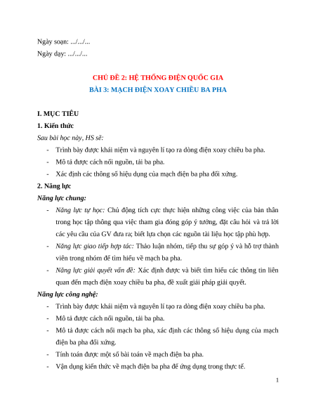 - Vận dụng kiến thức về mạch điện ba pha để ứng dụng trong thực tế. 1 3. Phẩm chất