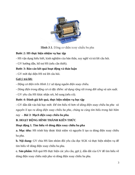 Giáo án Bài 3: Mạch điện xoay chiều ba pha (2024) Công nghệ Điện - Điện tử 12 Cánh diều