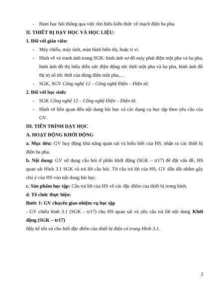 - GV dẫn dắt vào bài học mới: Để tìm hiểu rõ hơn về dòng điện xoay chiều ba pha,