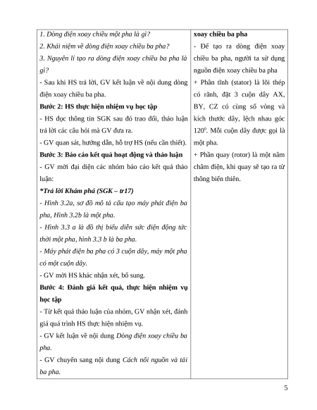- GV yêu cầu HS thảo luận theo nhóm đôi, nghiên lệch nhau 1200 giữa các pha.