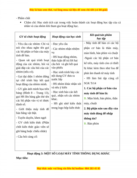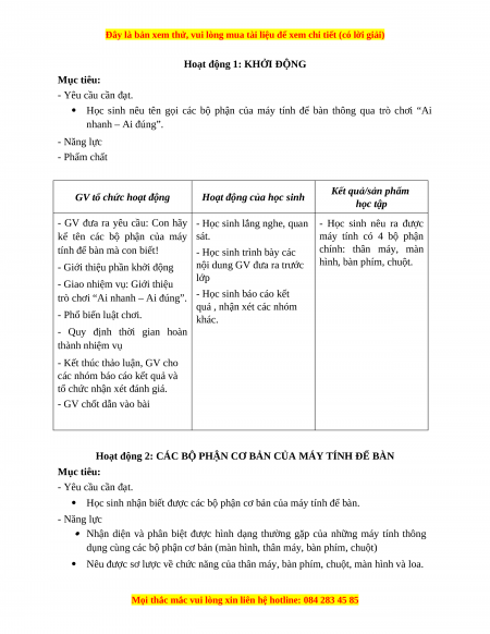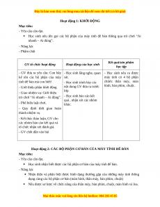 Hoạt động 2: CÁC BỘ PHẬN CƠ BẢN CỦA MÁY TÍNH ĐỂ BÀN Mục tiêu: - Yêu cầu cần đạt.