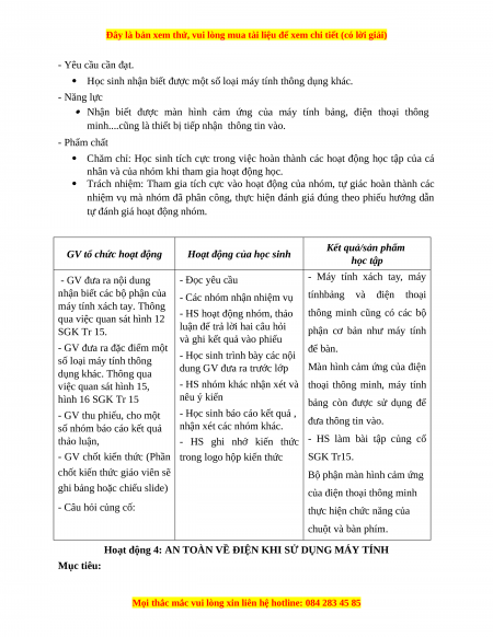 Hoạt động của học sinh học tập - GV đưa ra nội dung - Đọc yêu cầu - Máy tính xách tay, máy