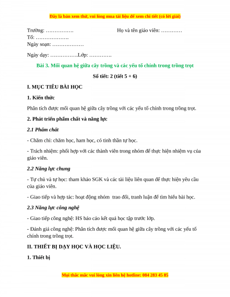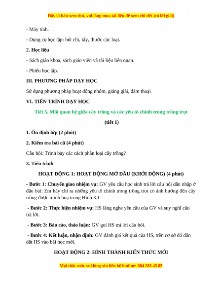 Tiết 5. Mối quan hệ giữa cây trồng và các yếu tố chính trong trồng trọt (tiết 1)