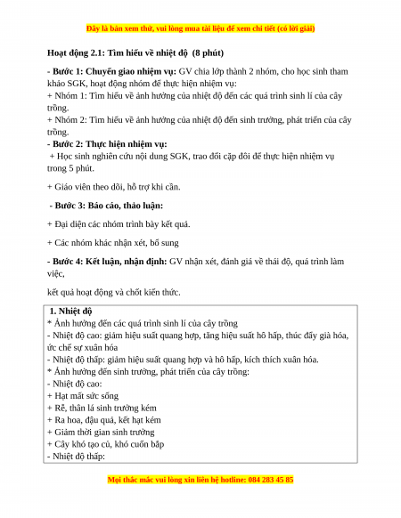 + Nhóm 2: Tìm hiểu về ảnh hưởng của nhiệt độ đến sinh trưởng, phát triển của cây trồng.
