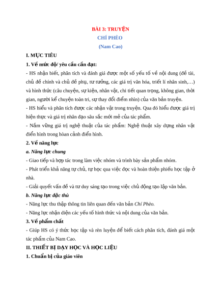 BÀI 3: TRUY N Ệ CHÍ PHÈO (Nam Cao) I. M C Ụ TIÊU 1. V m ề ức đ / ộ yêu c u c ầ n đ ầ t ạ : - HS nh n ậ bi t