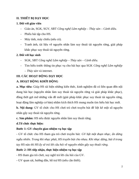 Giáo án Bài 3: Nguyên nhân suy thoái tài nguyên rừng Công nghệ 12 Cánh diều
