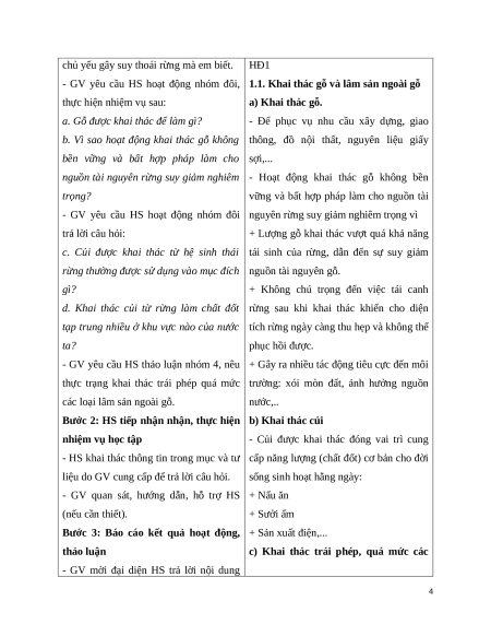 - GV yêu cầu HS hoạt động nhóm đôi, 1.1. Khai thác gỗ và lâm sản ngoài gỗ
