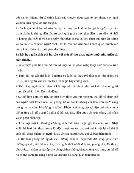 - Sự kết hợp giữa tính phi hư cấu với một số thủ pháp nghệ thuật như miêu tả, trần thuật,...