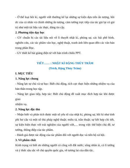 (Trích, Đặng Thùy Trâm) I. MỤC TIÊU 1. Năng lực chung