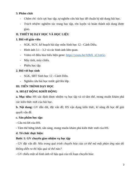 Giáo án Bài 3 Sinh học 12 Cánh diều: Điều hòa biểu hiện gene
