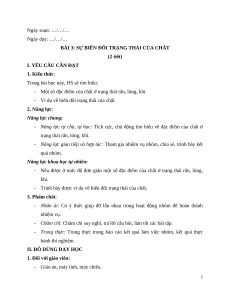 - Trình bày được ví dụ về biến đổi trạng thái của chất. 3. Phẩm chất: