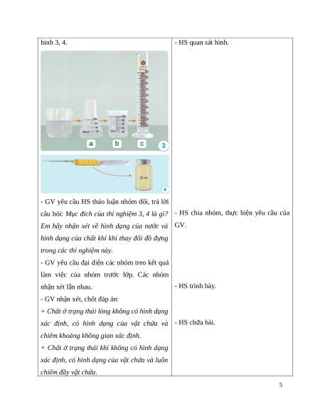một số đặc điểm của chất ở trạng thái rắn, lỏng, khí. b. Cách tiến hành: