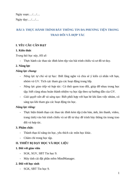 - Thực hành các thao tác đính kèm tệp vào bài trình chiếu và sơ đồ tư duy. 2. Năng lực