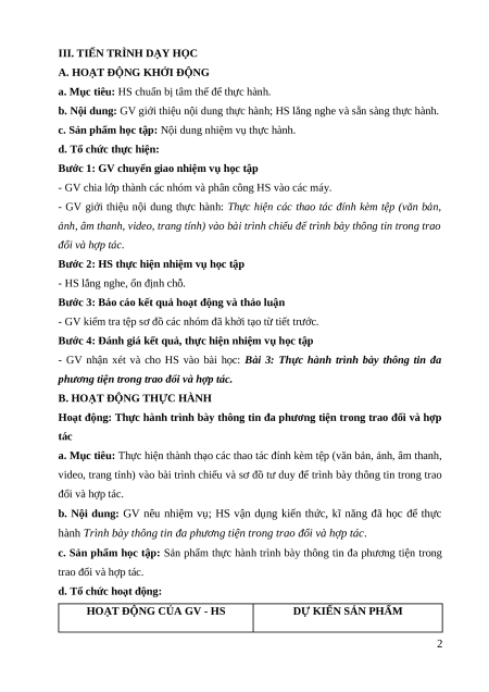Giáo án Bài 3: Thực hành trình bày thông tin đa phương tiện Tin học 9 Cánh diều