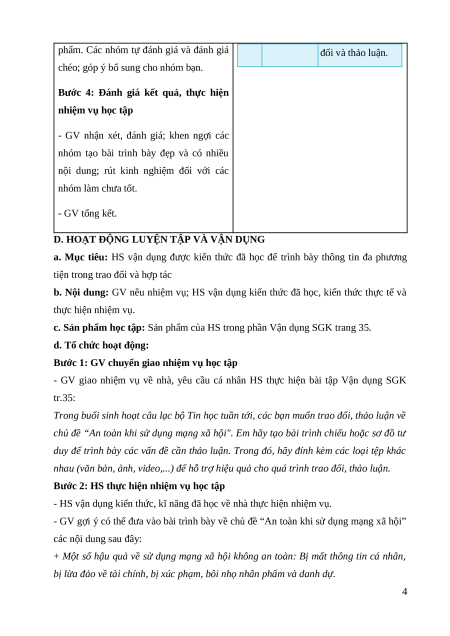 D. HOẠT ĐỘNG LUYỆN TẬP VÀ VẬN DỤNG