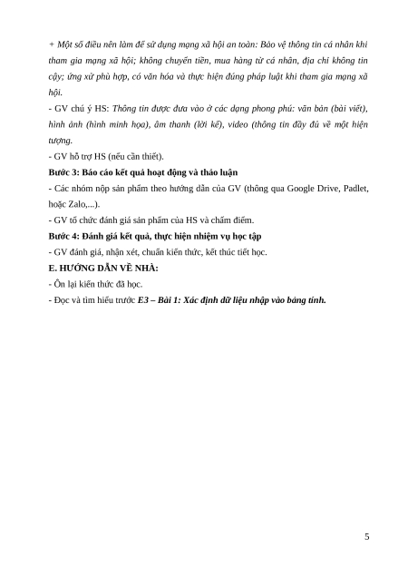 - GV gợi ý có thể đưa vào bài trình bày về chủ đề “An toàn khi sử dụng mạng xã hội” các nội dung sau đây: