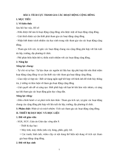 BÀI 3: TÍCH CỰC THAM GIA CÁC HOẠT ĐỘNG CỘNG ĐỒNG I. MỤC TIÊU 1. Về kiến thức