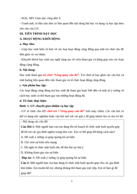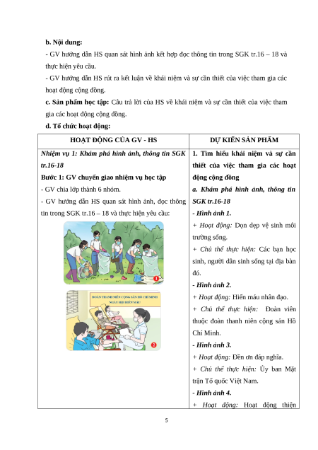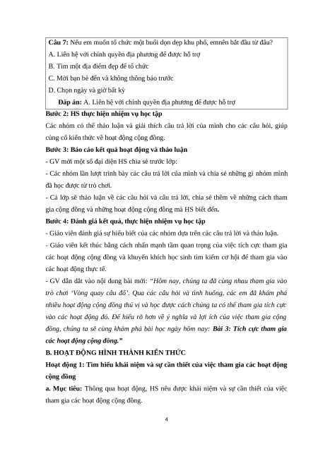 - Khuyến khích học sinh suy nghĩ sáng tạo về cách tham gia và đóng góp vào các hoạt động cộng đồng. b. Nội dung: