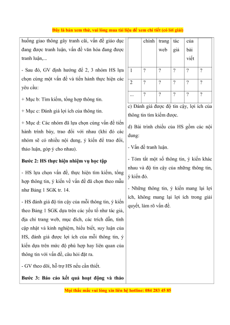 - HS đánh giá độ tin cậy của mỗi thông tin, ý kiến quyết, làm rõ vấn đề.