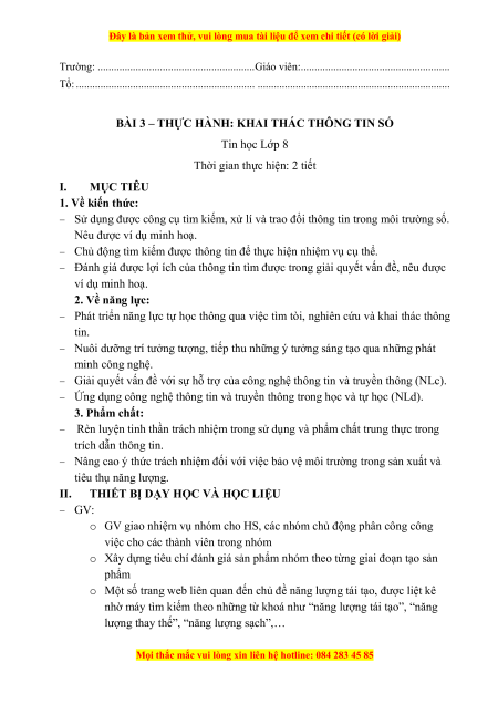 BÀI 3 – THỰC HÀNH: KHAI THÁC THÔNG TIN SỐ Tin học Lớp 8
