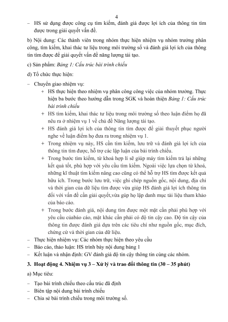 2. Hoạt động 3: Nhiệm vụ 2 – Tìm kiếm và đánh giá thông tin (15-20 phút) a) Mục tiêu: 4