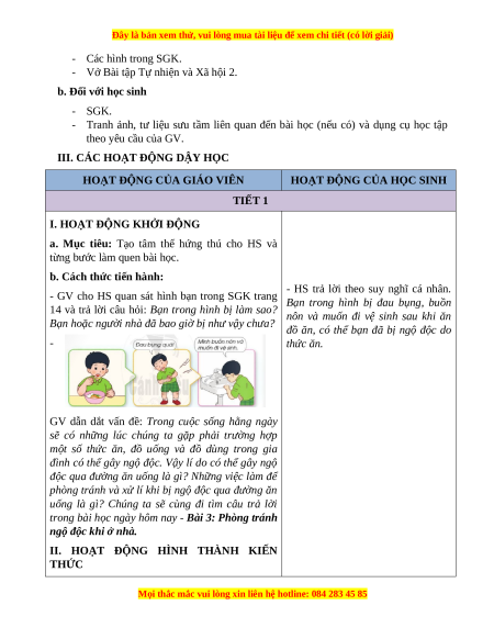 Giáo án Bài 3 Tự nhiên xã hội lớp 2 Cánh diều: Phòng tránh ngộ độc khi ở nhà