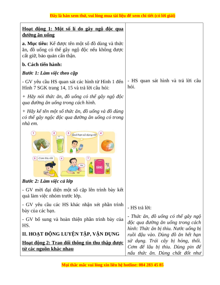 Hoạt động 1: Một số lí do gây ngộ độc qua đường ăn uống