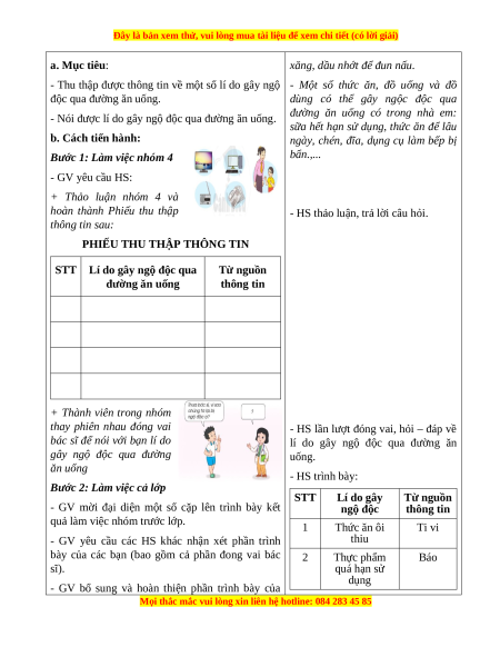 Đưa ra được các tình huống xử lí khi bản thân hoặc người nhà bị ngộ độc. 3. Phẩm chất