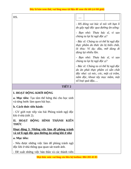 BÀI 3: PHÒNG TRÁNH NGỘ ĐỘC KHI Ở NHÀ (2 tiết) I. MỤC TIÊU