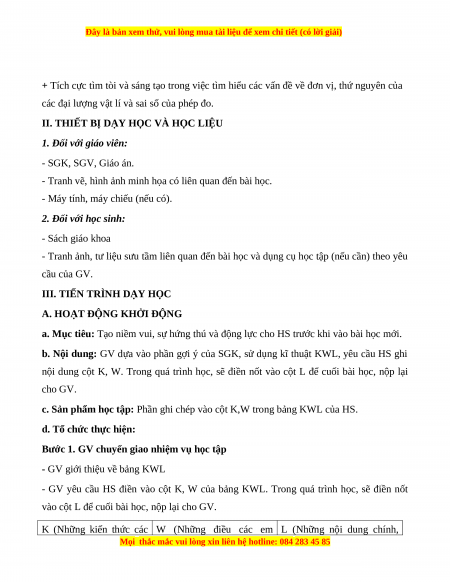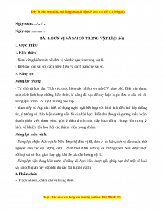 BÀI 3. ĐƠN VỊ VÀ SAI SỐ TRONG VẬT LÍ (3 tiết) I. MỤC TIÊU 1. Kiến thức: