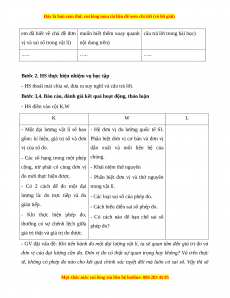 nội dung cột K, W. Trong quá trình học, sẽ điền nốt vào cột L để cuối bài học, nộp lại cho GV.