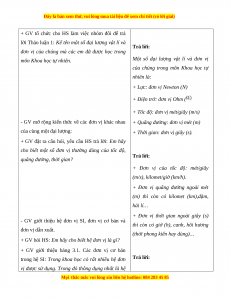 - Năng lực nhận thức vật lí: Nêu được hệ đơn vị SI, đơn vị cơ bản, đơn vị dẫn xuất; thứ