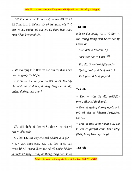 + GV giới thiệu bảng 3.1. Các đơn vị cơ bản