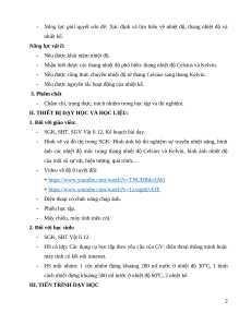 - Chuyển đổi được nhiệt độ đo theo thang Celsius sang nhiệt độ đo theo thang Kelvin và ngược lại. 2. Năng lực